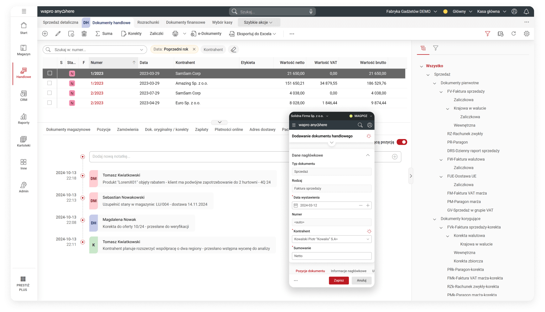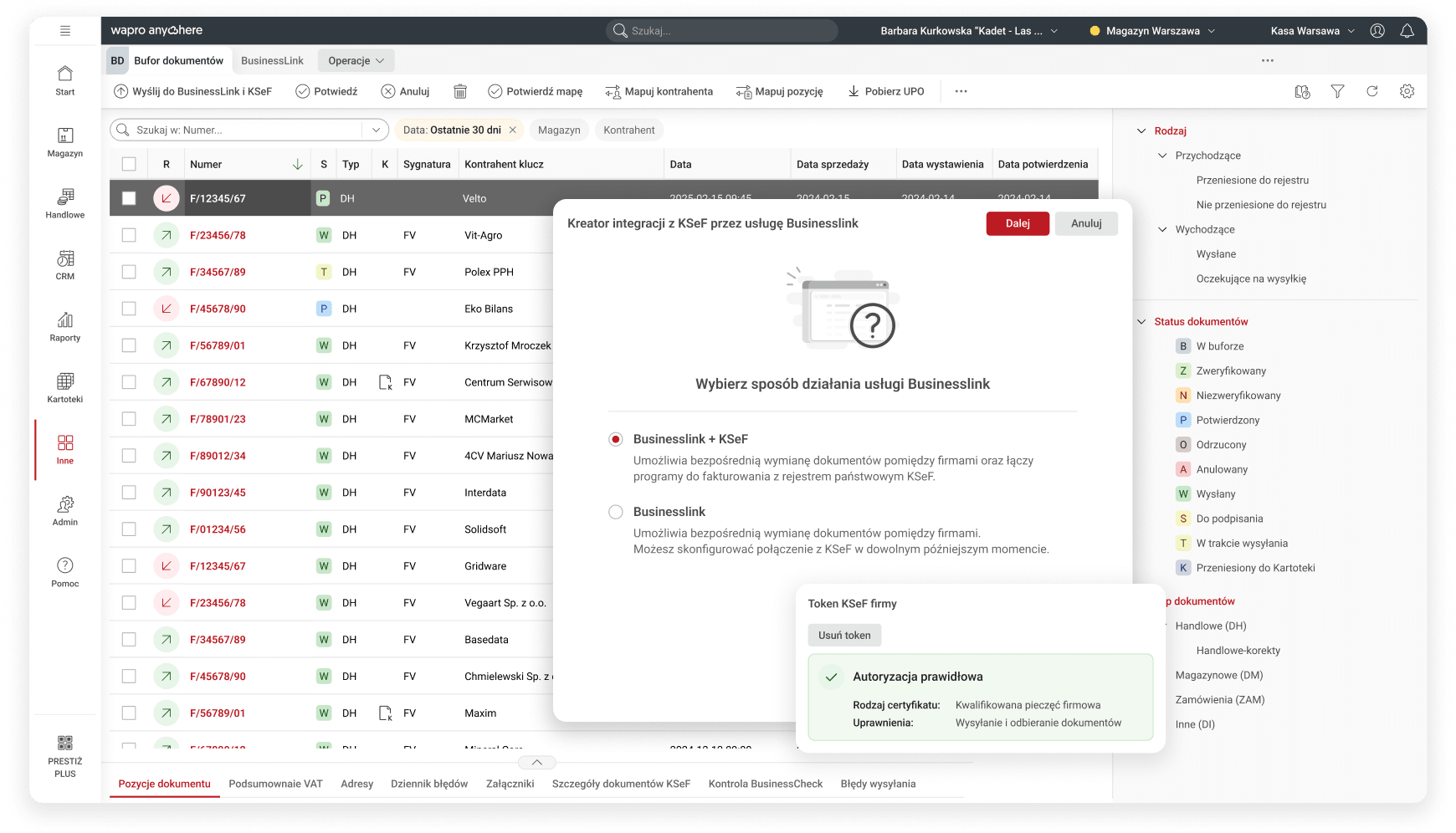 The system combines trade, warehouse and transportation data in one place, providing full visibility into every stage of customer service. Thanks to integration with warehouse, finance and accounting modules and KSeF, you always have up-to-date data on inventory, payments and documents.
